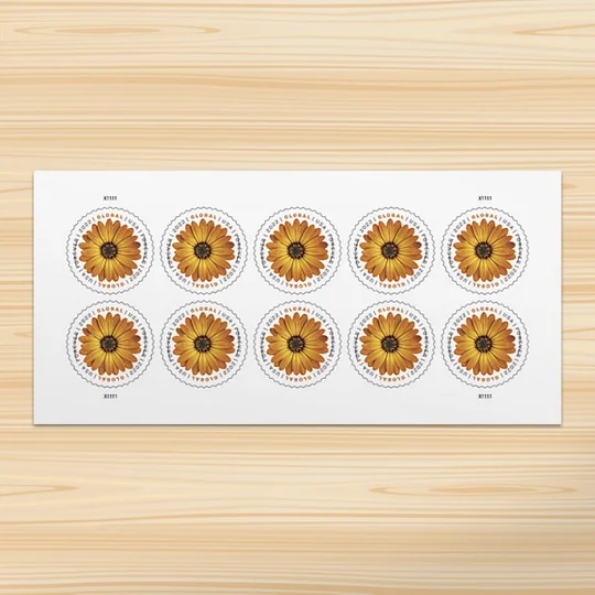 | Content | A colorful African Daisy graces a new Global stamp from the U.S. Postal Service. This round Global stamp can be used to mail aone-ounce letter to any country to which First-Class Mail International® service is available. As with all Global stamps, this stampwill have a postage value equivalent to the price of the single-piece First-Class Mail International first-ounce machinable letter ineffect at the time of use.