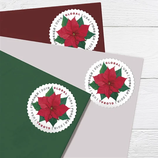 Celebrate the holidays with Poinsettia, a new Global Forever® stamp from the U.S. Postal Service®.