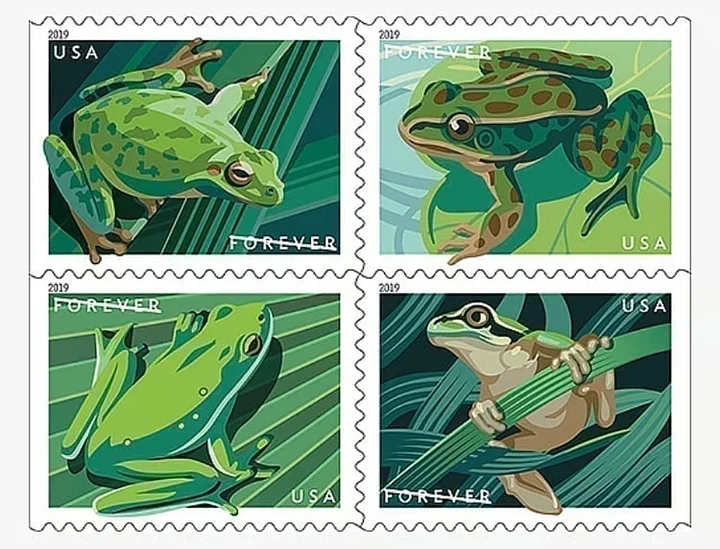 4 North American frogs: the Pacific tree frog, the northern leopard frog, the American green tree frog, and the squirrel tree frog. (2019)